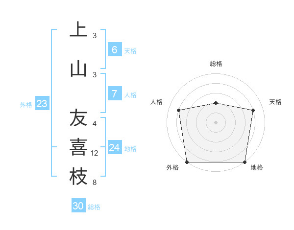 上山 友喜枝さんの総格は30画の2点!