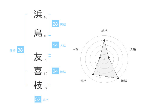 浜島 友喜枝さんの外格は38画の4点