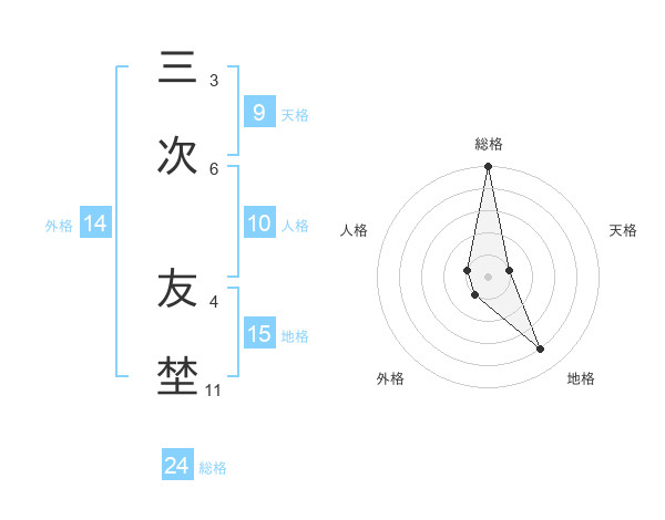 三次 友埜さんの総格は24画の5点!