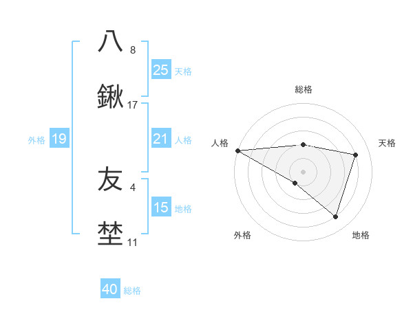 八鍬 友埜さんを姓名の画数から五運を鑑定