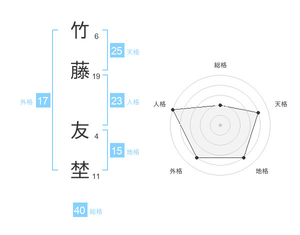 竹藤 友埜さんを姓名の画数から五運を鑑定