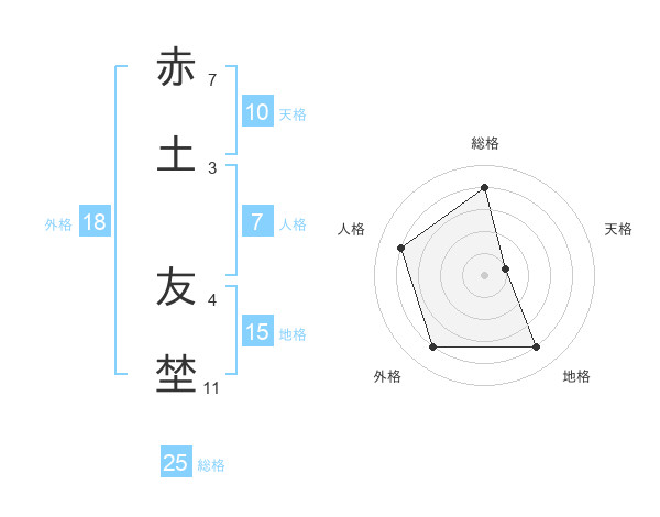赤土 友埜さんを姓名の画数から五運を鑑定