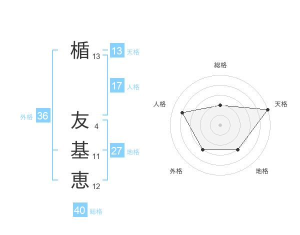 楯 友基恵さんの総格は40画の2点