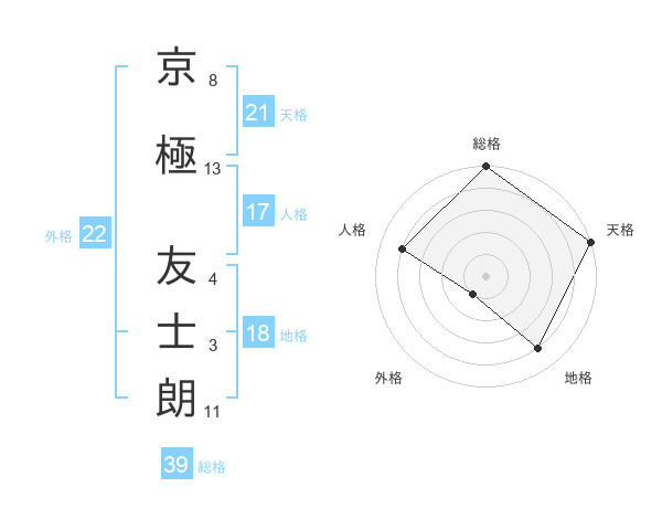 京極 友士朗さんの総格は39画の5点!
