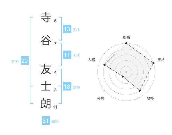 寺谷 友士朗さんを姓名の画数から五運を鑑定
