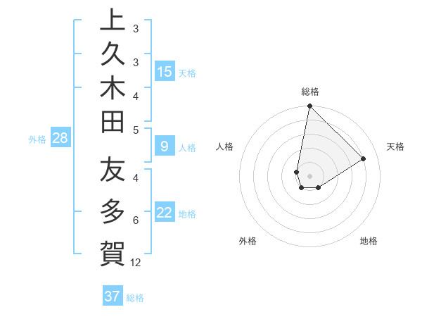 上久木田 友多賀さんを姓名の画数から五運を鑑定