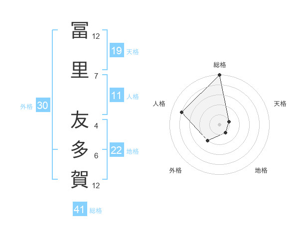 冨里 友多賀さんを姓名の画数から五運を鑑定