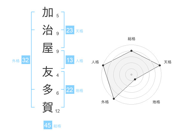 加治屋 友多賀さんを姓名の画数から五運を鑑定