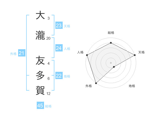 大瀧 友多賀さんを姓名の画数から五運を鑑定