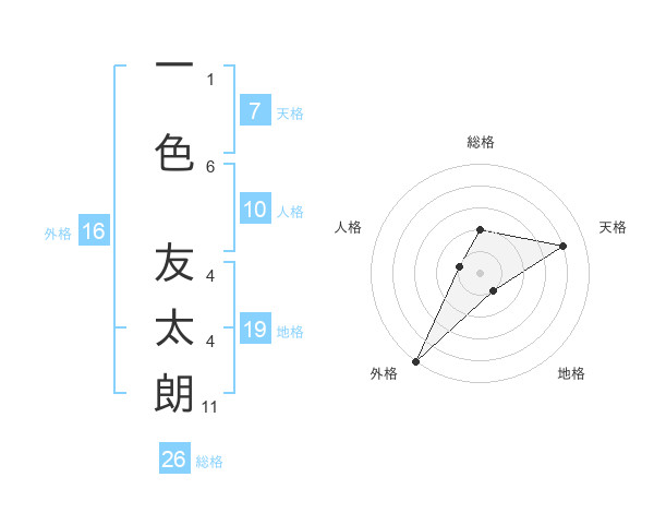 一色 友太朗さんを姓名の画数から五運を鑑定