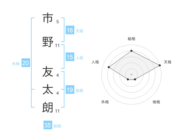市野 友太朗さんを姓名の画数から五運を鑑定