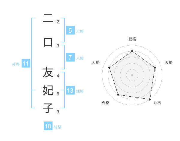 二口 友妃子さんの地格は13画の5点!