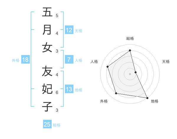 五月女 友妃子さんを姓名の画数から五運を鑑定