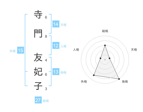 寺門 友妃子さんを姓名の画数から五運を鑑定