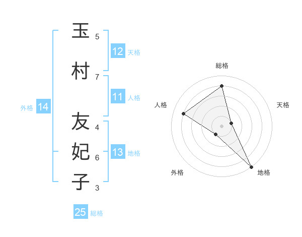 玉村 友妃子さんの総格は25画の4点!