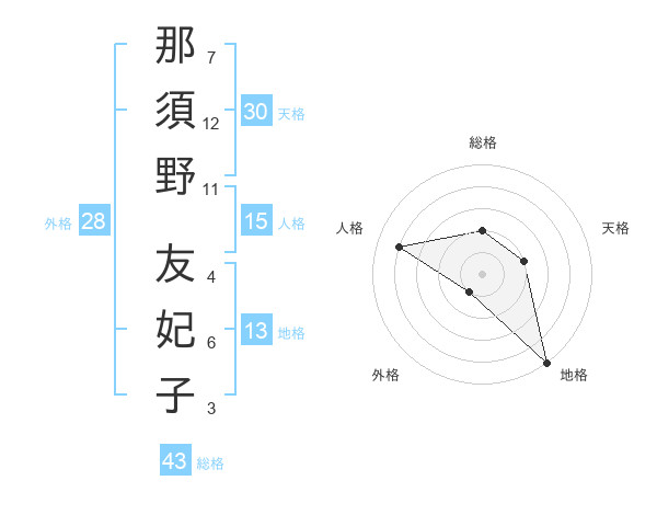 那須野 友妃子さんを姓名の画数から五運を鑑定