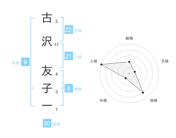 古沢 友子一さんを姓名の画数から五運を鑑定