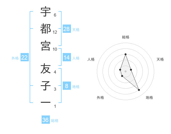 宇都宮 友子一さんを姓名の画数から五運を鑑定