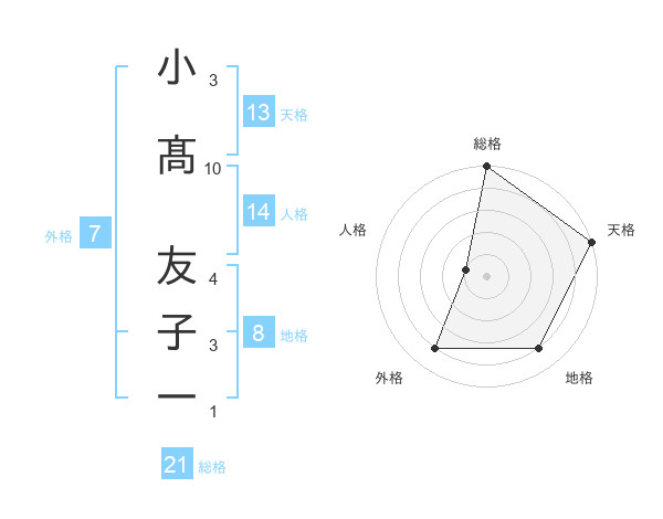 小髙 友子一さんの総格は21画の5点!