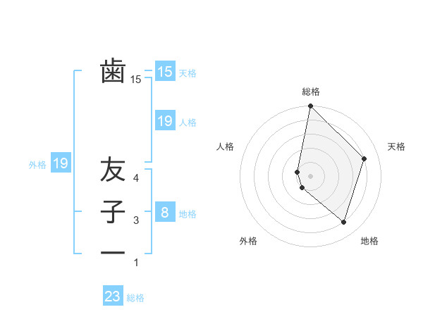 歯 友子一さんの総格は23画の5点!