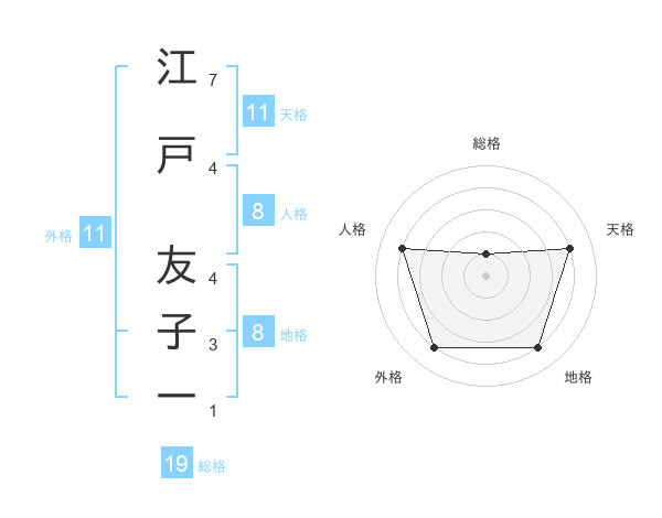 江戸 友子一さんを姓名の画数から五運を鑑定