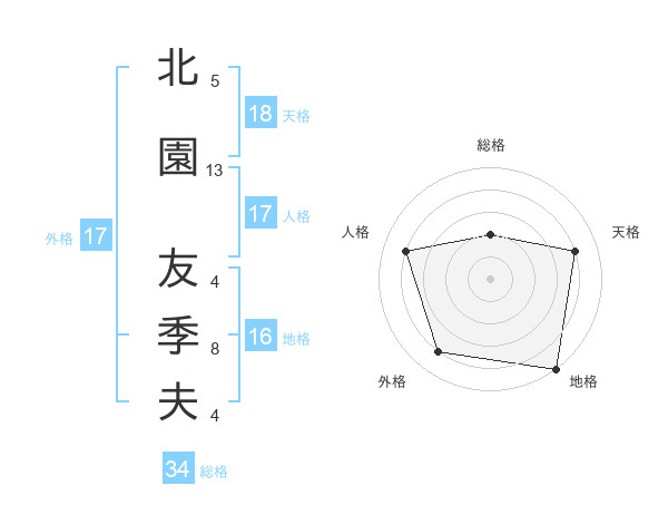 北園 友季夫さんを姓名の画数から五運を鑑定