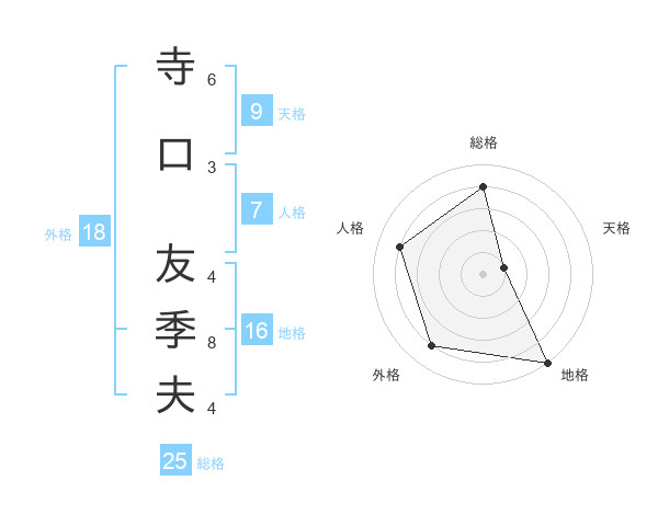 寺口 友季夫さんの総格は25画の4点!