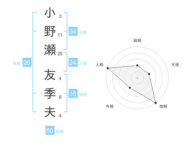 小野瀬 友季夫さんの名前の鑑定結果は!