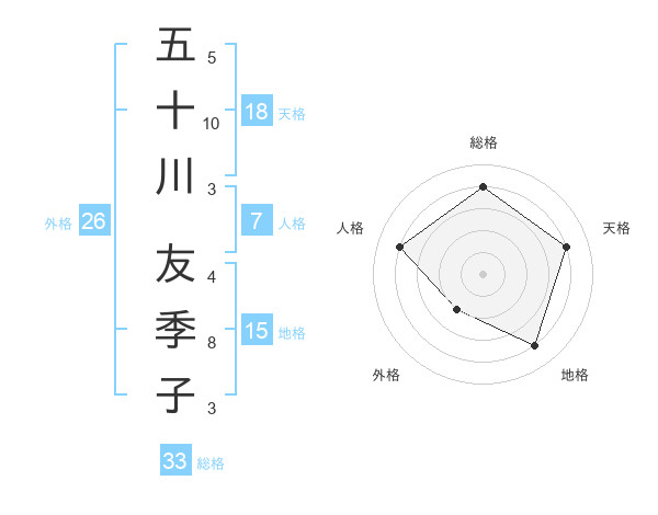 五十川 友季子さんを姓名の画数から五運を鑑定