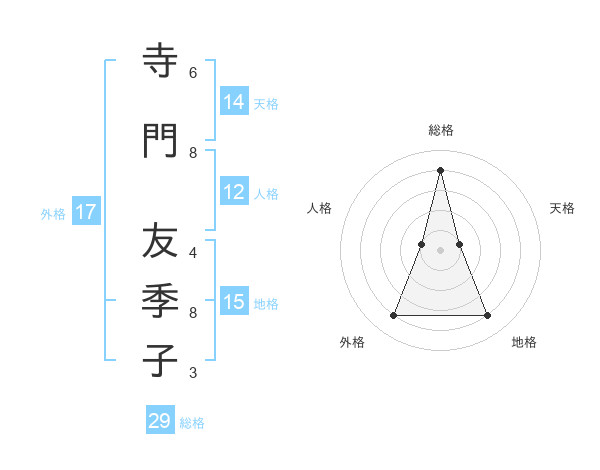 寺門 友季子さんの総格は29画の4点!