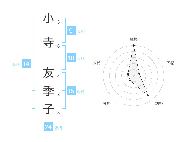 小寺 友季子さんの総格は24画の5点!