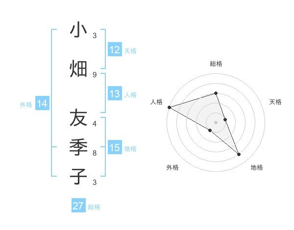 小畑 友季子さんを姓名の画数から五運を鑑定