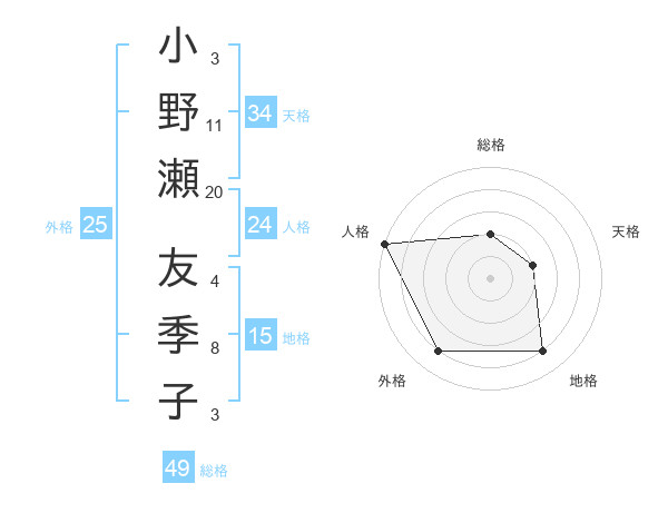 小野瀬 友季子さんの総格は49画の2点