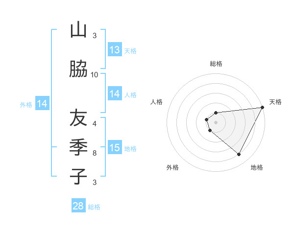 山脇 友季子さんを姓名の画数から五運を鑑定