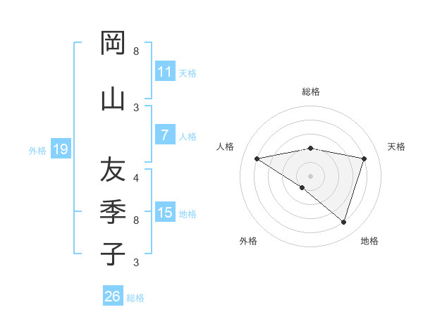 岡山 友季子さんの総格は26画の2点!