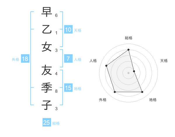 早乙女 友季子さんを姓名の画数から五運を鑑定