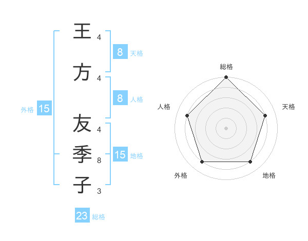 占い結果は姓名判断である以上、良い場合も悪い場合もありますが、決してお名前を誹謗中傷するものでなく、画数の自動計算によって得られたものです。また、本サイトの検索によって得られた鑑定結果で、第三者を誹謗中傷したり名誉を棄損するような行為を禁じます。