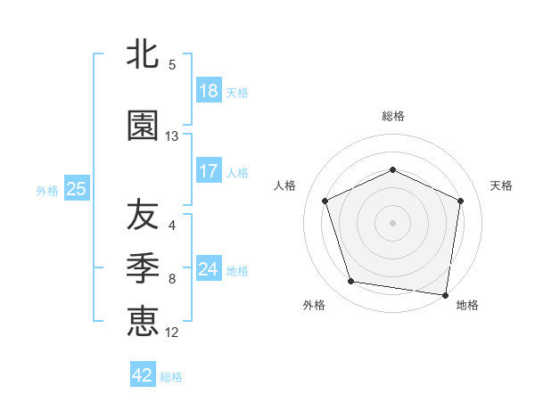 北園 友季恵さんを姓名の画数から五運を鑑定