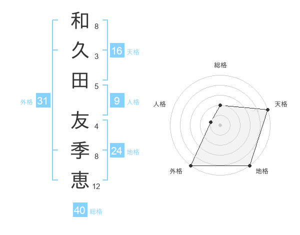 和久田 友季恵さんの総格は40画の2点