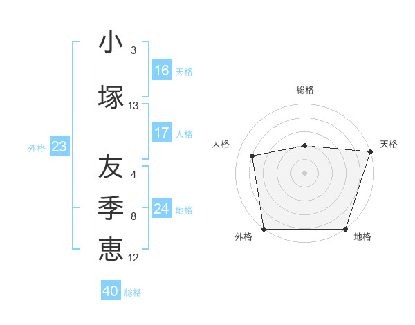 小塚 友季恵さんを姓名の画数から五運を鑑定