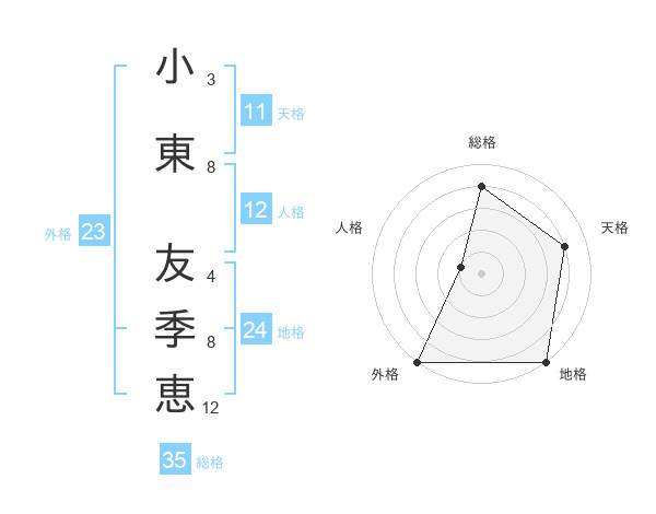 小東 友季恵さんを姓名の画数から五運を鑑定