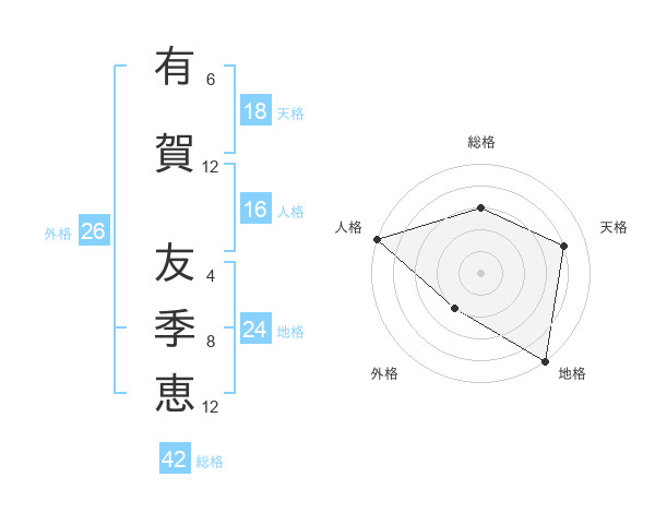 有賀 友季恵さんを姓名の画数から五運を鑑定