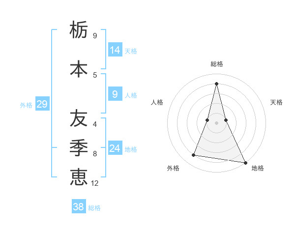 栃本 友季恵さんの総格は38画の4点!