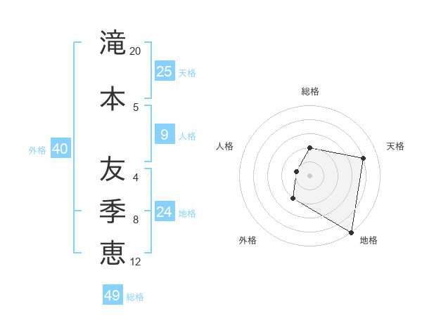 滝本 友季恵さんを姓名の画数から五運を鑑定