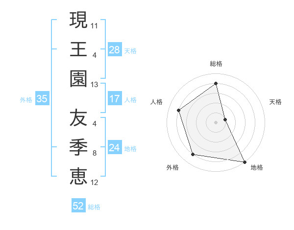 現王園 友季恵さんを姓名の画数から五運を鑑定