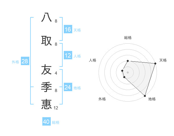 八取 友季惠さんの総格は40画の2点!
