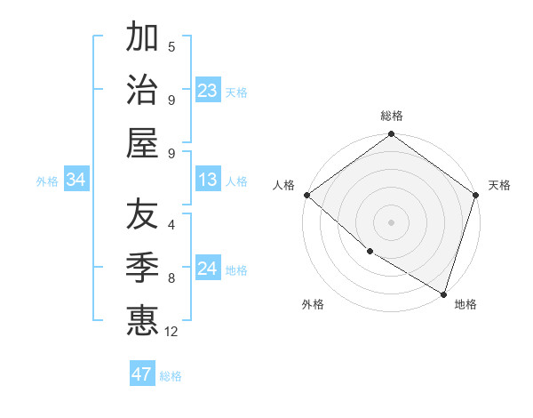 加治屋 友季惠さんを姓名の画数から五運を鑑定