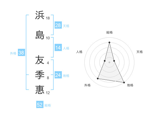 浜島 友季惠さんを姓名の画数から五運を鑑定