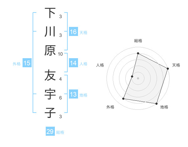 下川原 友宇子さんを姓名の画数から五運を鑑定