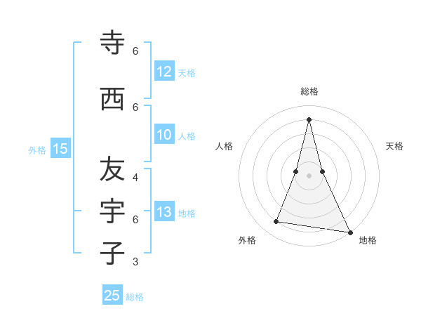 寺西 友宇子さんの総格は25画の4点!